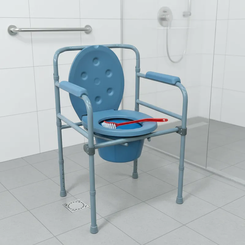 Baño plegable portátil, de acero esmaltado, color GRIS, para uso domiciliario y de gran utilidad para personas con movilidad reducida.