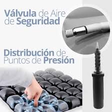 Celdas de aire de 3 interconectadas que distribuyen la presión de manera uniforme. Superficie confortable, funcional y estable.