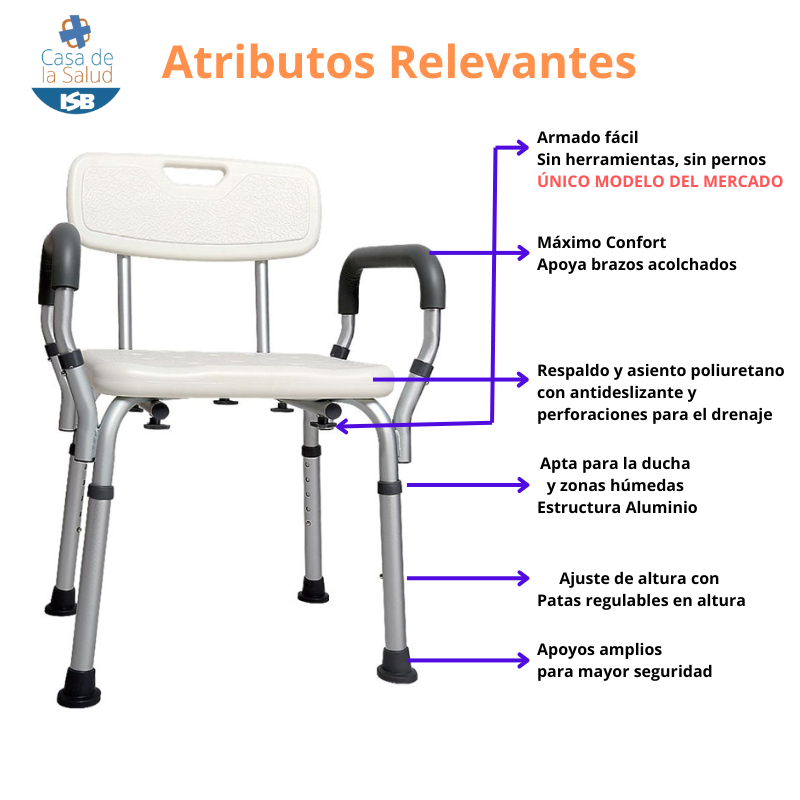 Silla ducha con apoya brazos,te permitirá asistir al paciente, de una manera mas cómoda, segura.