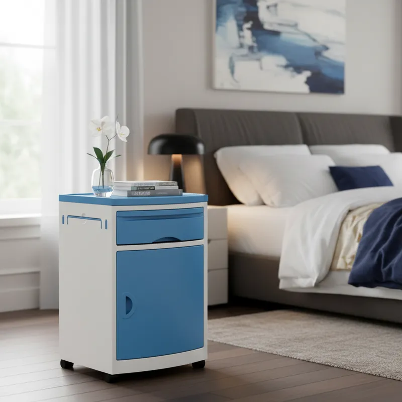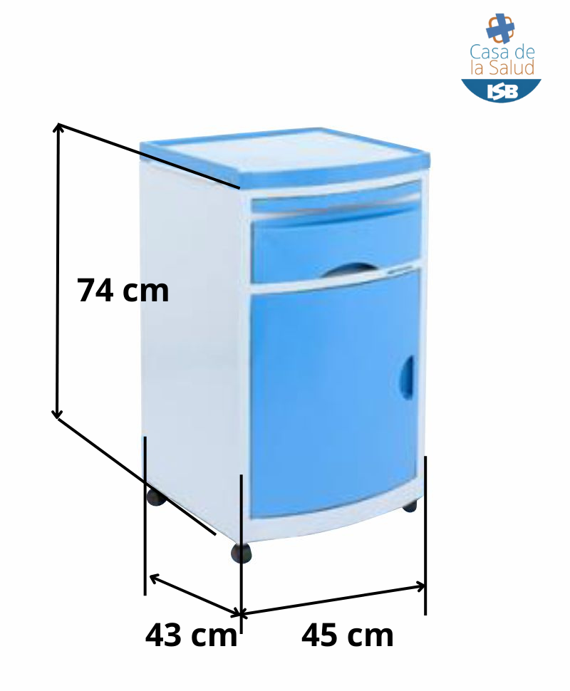 Práctico, higiénico y útil velador, para cama, liviano y cómodo para trasladar y guardar todo lo indispensable para el cuidado del paciente.