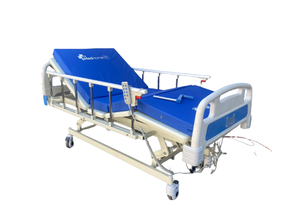 Catres clínicos con movimientos eléctrico, para cada función, provistos de barandas laterales, ganchos para sondas y portasuero telescopico